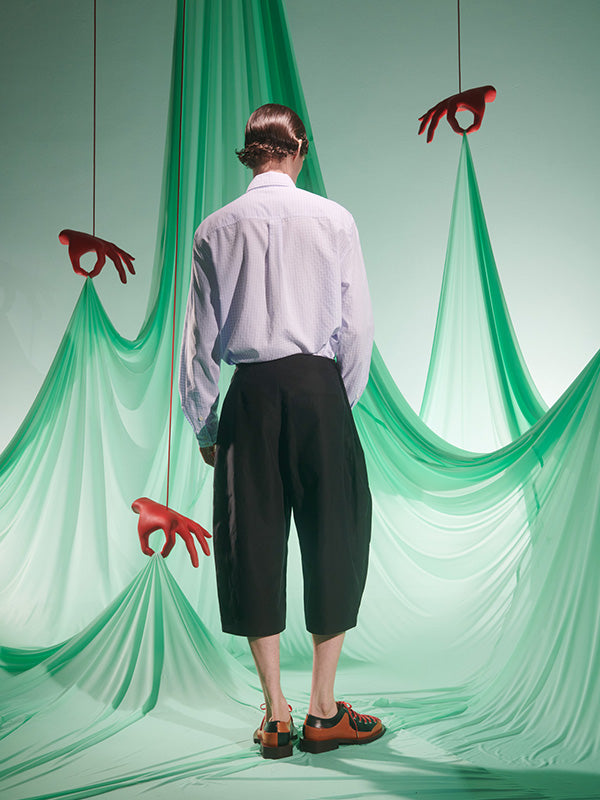 Button Shorts in Black from Henrik Vibskov’s SS25 Studio Collection ‘The Orchestra of the Soft Assistance’. Designer ID: SS25STUD-M510. Colour ID: 999 Black. We offer worldwide delivery. Duties & taxes paid. Shop now at Henrik Vibskov Boutique.