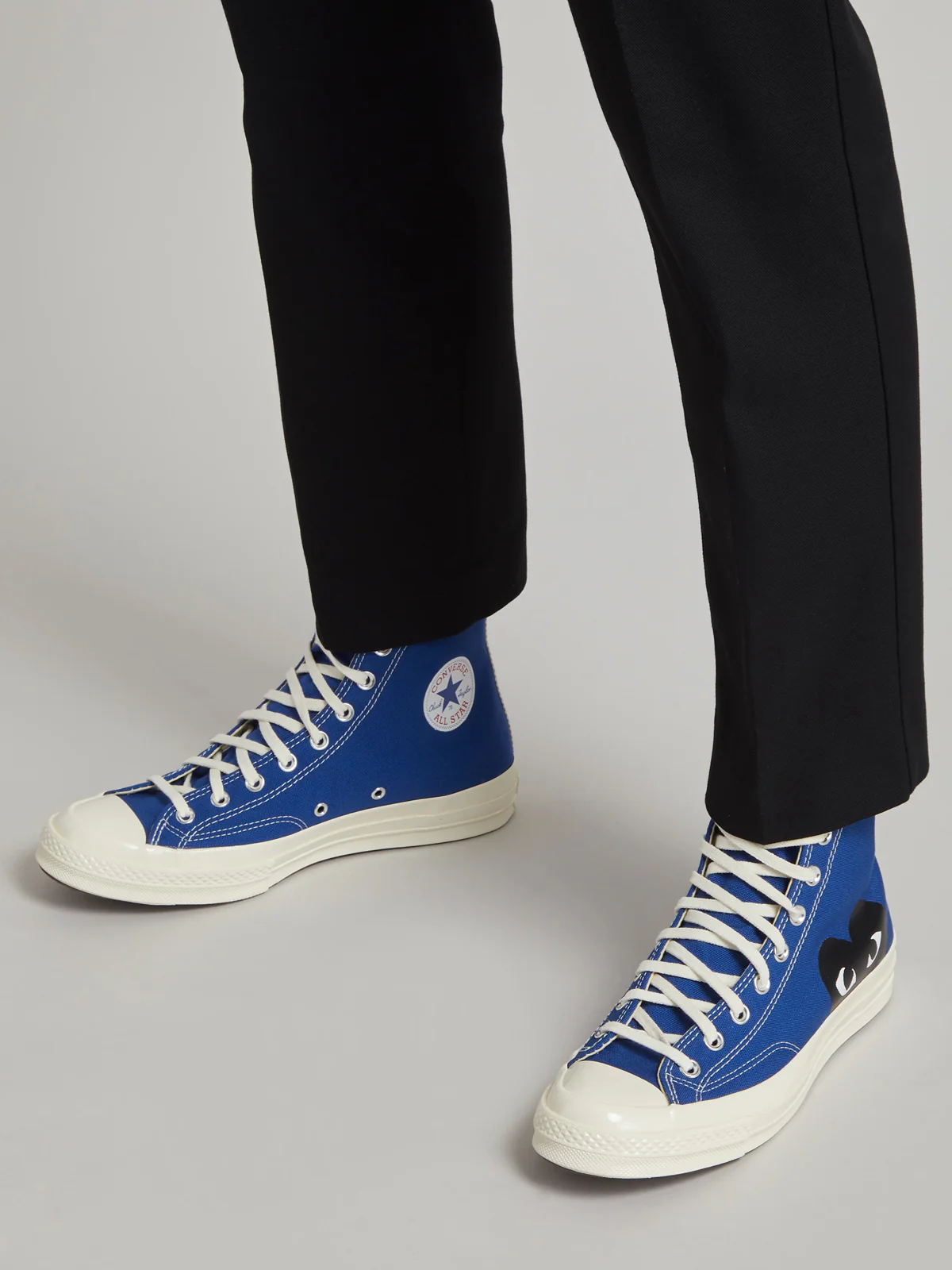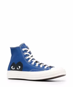 High Blue Cotton Converse ‘Chuck Taylor’ Sneakers from Comme Des Garçons Play. Featuring White Rubber Sole, a Contrasting Toe Cap, a Heart Print on the Side and a Lace-Up Front Fastening. We offer worldwide delivery. Duties and taxes paid. Shop now at Henrik Vibskov Boutique.
