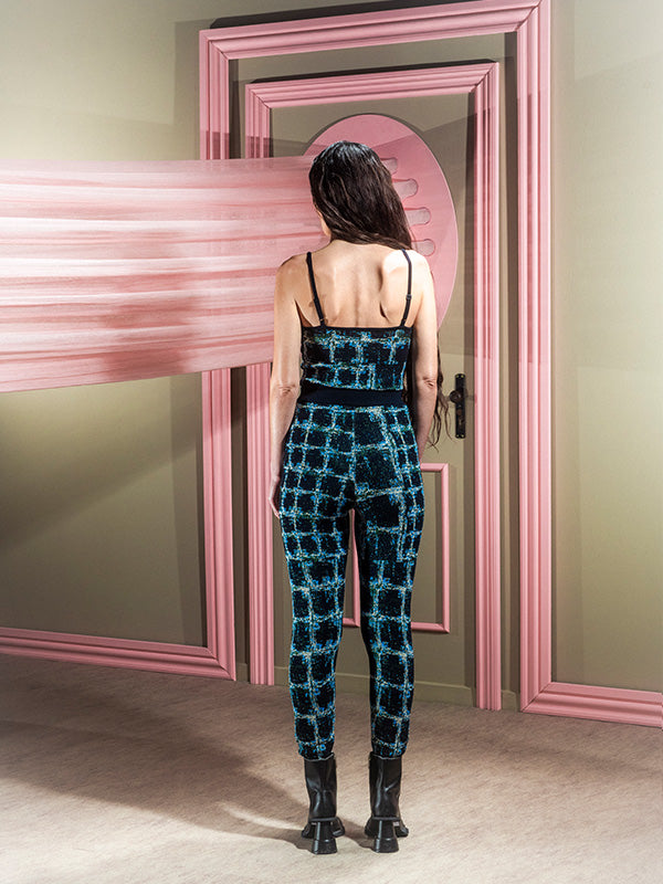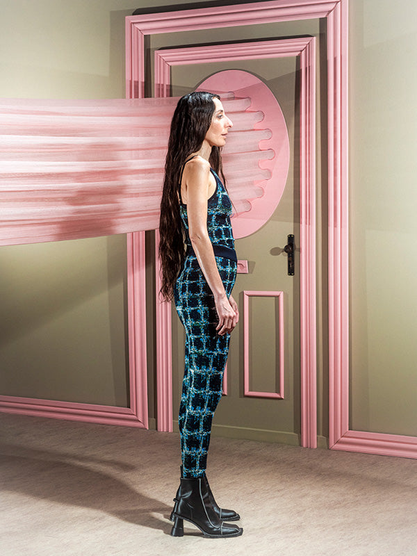 Dusk Knitted Pants in Black Shibori Checks from Henrik Vibskov’s AW24 Studio Collection ‘Daily Chewing Gum Therapy’. Made in Bulgaria. Designer ID: AW24STUD-F705. Colour ID: 989 Black Shibori Checks. We offer worldwide delivery. Duties & taxes paid. Shop now at Henrik Vibskov Boutique.