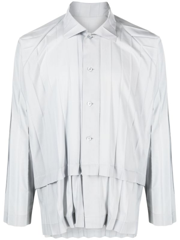 Edge Shirt in Grey from Issey Miyake Homme Plisse. Made in Philippines. Composition: 100% Polyester. Designer ID: HP38FJ340. Color ID: 11-LT.GRAY. We offer worldwide delivery. Duties & taxes paid. Shop now at Henrik Vibskov Boutique.