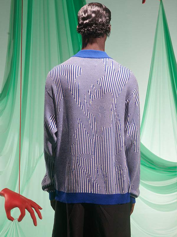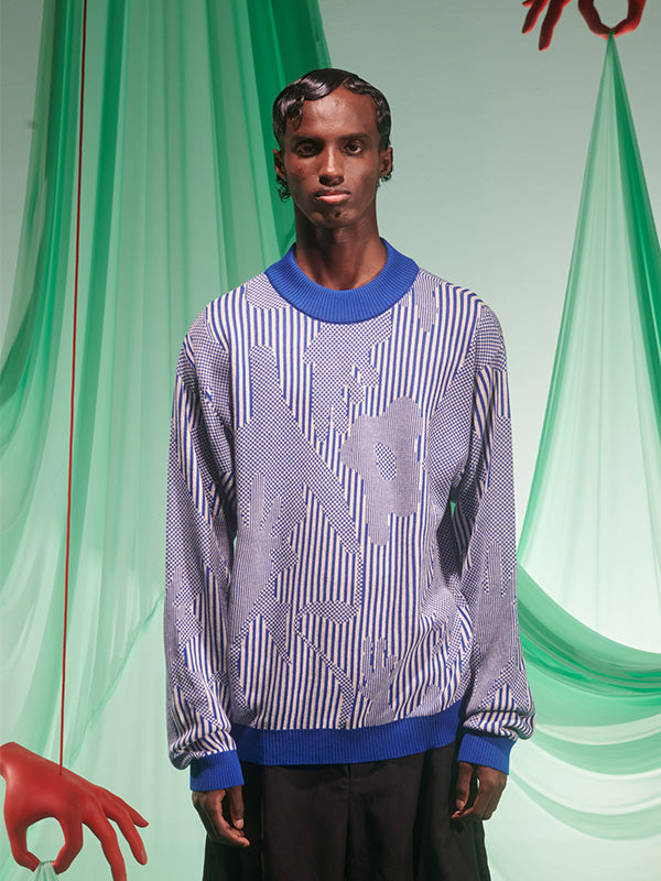 Hands Knitted Jumper in Blue White Hands from Henrik Vibskov’s SS25 Studio Collection ‘The Orchestra of the Soft Assistance’. Designer ID: SS25STUD-M710. Colour ID: 725 Blue White Hands. We offer worldwide delivery. Duties & taxes paid. Shop now at Henrik Vibskov Boutique.