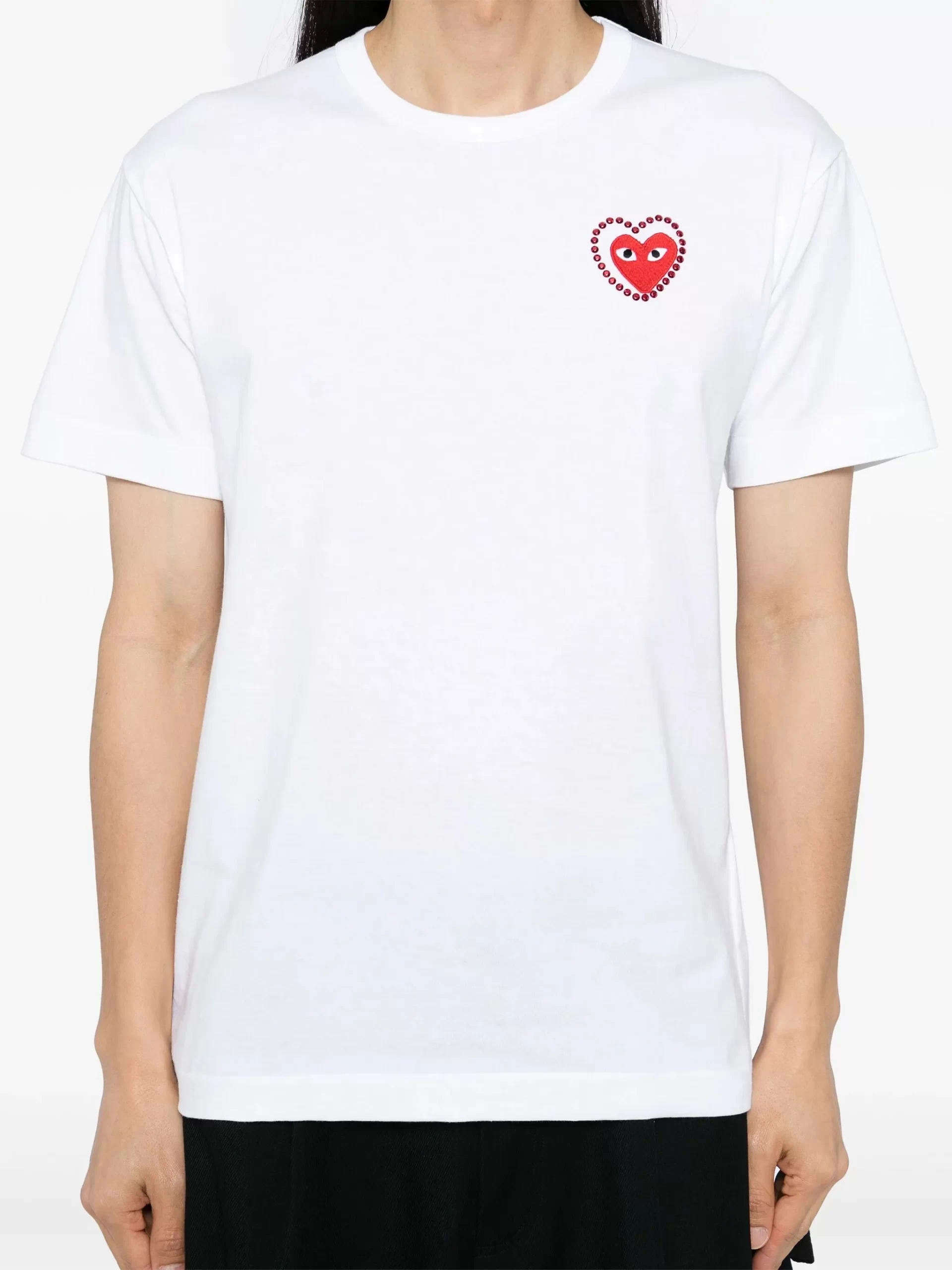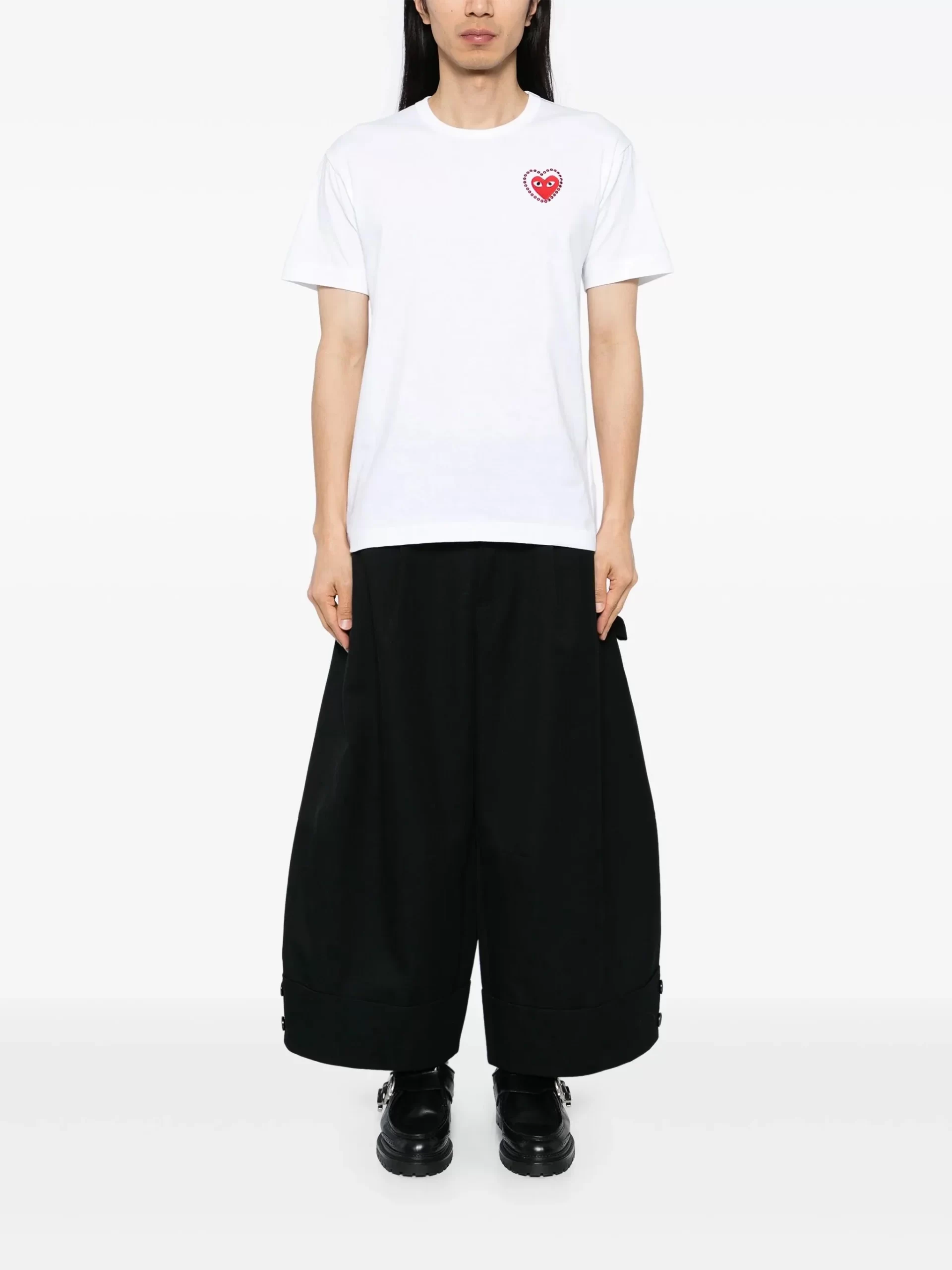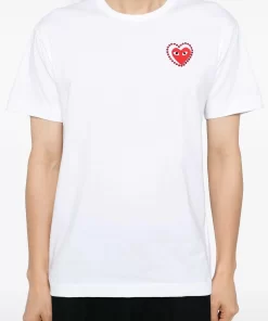 Metalstone Red Heart T-Shirt in White from Comme des Garçons Play. Designer ID: AX-T802-051. Colour ID: White/Red. We offer worldwide delivery. Duties and taxes paid. Shop now at Henrik Vibskov Boutique.